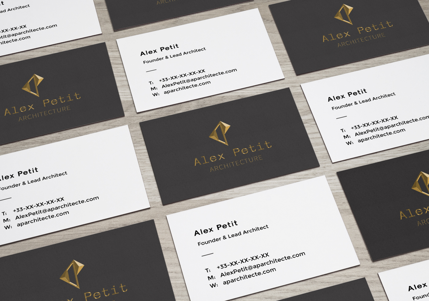 Personal project about setting up an identity and website for an architect. Simple, clean, and professionnal were the key words around this identity, to reflect the pure lines of his creations. You can see a hint of luxury on the business cards with the grey and gold, and colors on the website to make it more lively, contrasting with the choice of dark colors for the identity. [Fictional project]