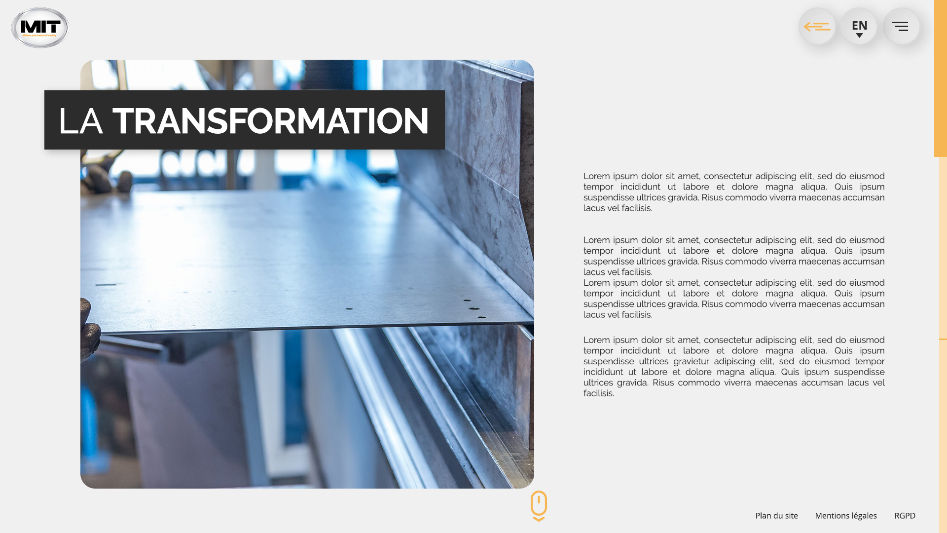 Making use of the sitemap that was relatively simple, we pushed on making the experience of browsing the website different from others in the same business : an horizontal scroll for the main page, while the rest of the website stay in a vertical scrolling, to give the user their usual scrolling behaviour as well as a better way to present the content. This allow My Industrial Trading to make a good impact on the first access, while not shocking the habits of people not used to such type of website experience as they browse the information they are looking for.